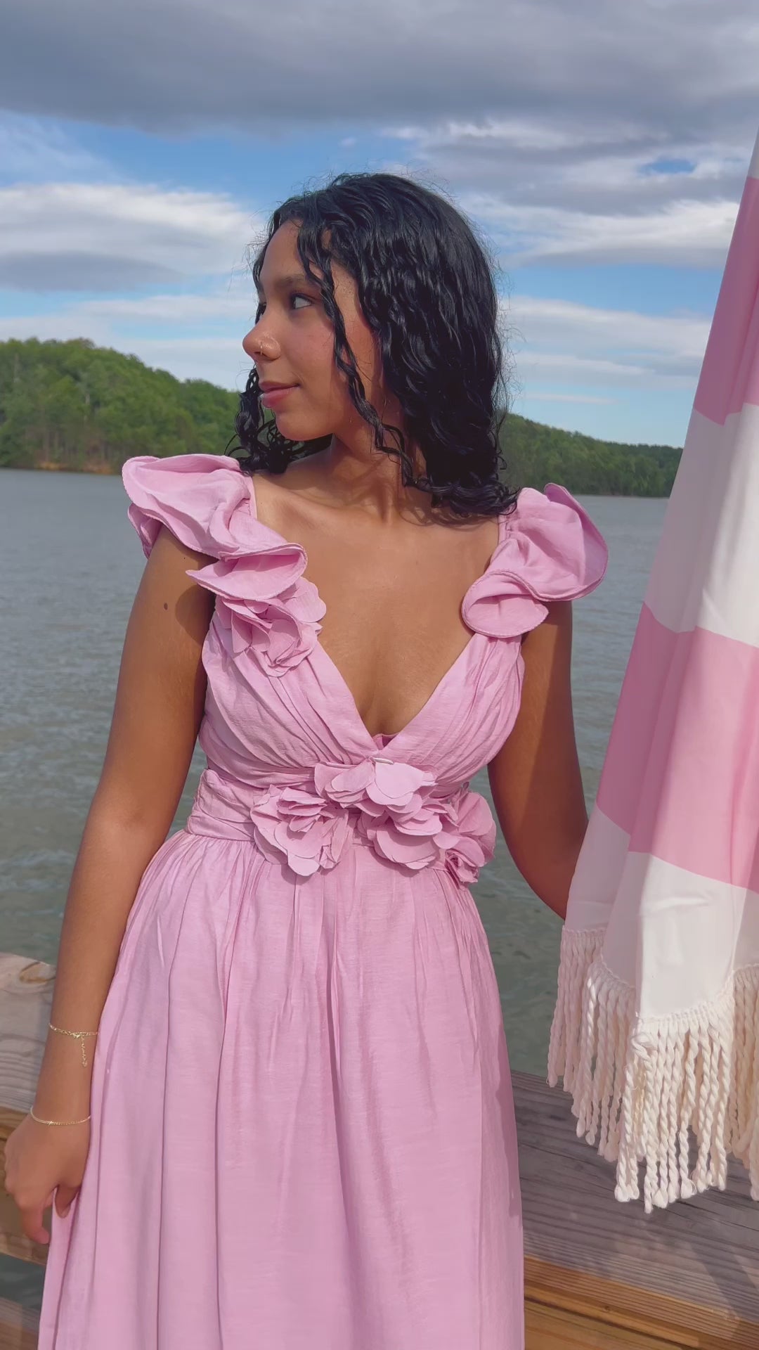 Graceful, girly, and made to turn heads—the Salt & Petals Dress is your go-to for every picture-perfect moment. Whether you’re attending a summer formal, chapter brunch, or senior send-off by the shore, this dress blends soft sorority sweetness with a touch of beachside elegance. The fluttery ruffle sleeves and floral-inspired bodice give it a romantic feel, while the flowy skirt is perfect for dancing the night away. Pair it with dainty heels and your favorite gold jewelry for a look that’s effortlessly Insta-worthy.